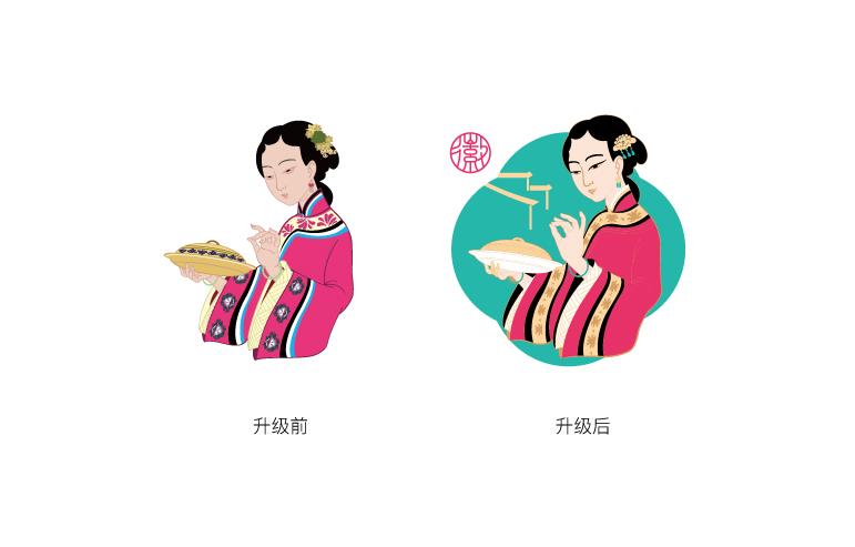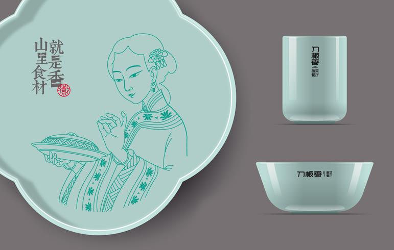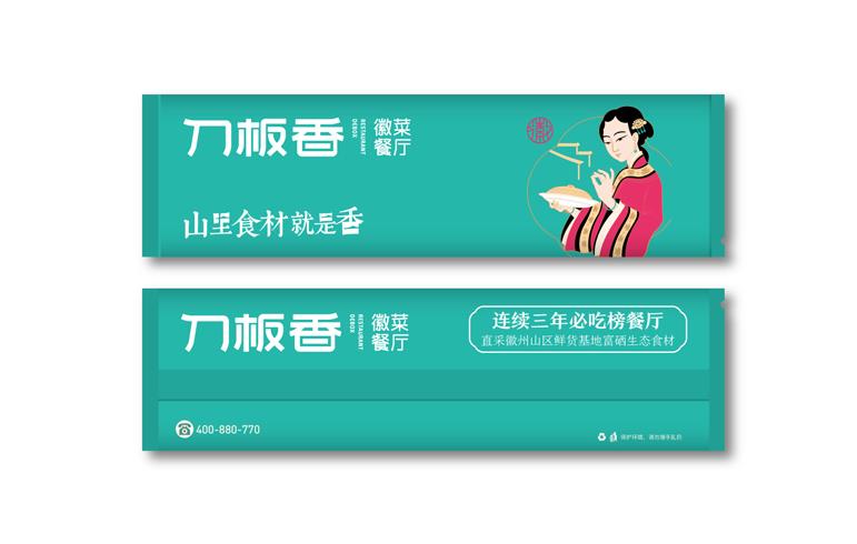 刀板香是一家合肥大众点评排名第一的徽菜餐厅,多年来品牌形象已经有非常高的认知度,在当地大家也许不知道刀板香三个字,但是都认识品牌logo上那个惠州名门闺秀的形象,因此在品牌升级策略上,我们沿用了原来的logo形象,做了优化工作,对整体美感做了提升,更加时尚,更符合当下的审美,传达效果也更强劲。